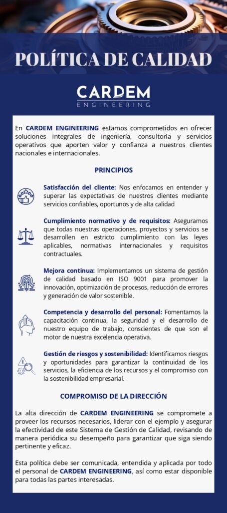 Contamos con un equipo multidisciplinario compuesto por mano de obra calificada, ingenieros especializados y consultores de primer nivel, todos comprometidos con la excelencia operativa y el éxito de nuestros clientes.